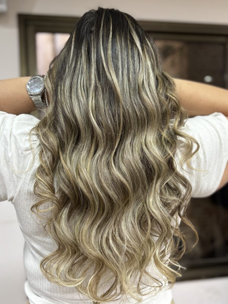 Integração perfeita com o cabelo original Leveza e movimento natural Discrição na raiz, mesmo com luzes claras